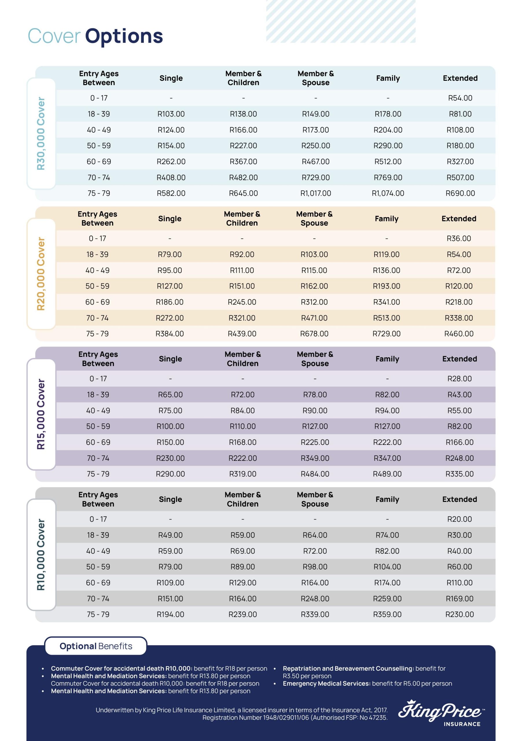 Underwritten by King Price Life Insurance Limited, a licensed insurer in terms of the Insurance Act, 2017. Registration Number 1948/029011/06 (Authorised FSP: No 47235)